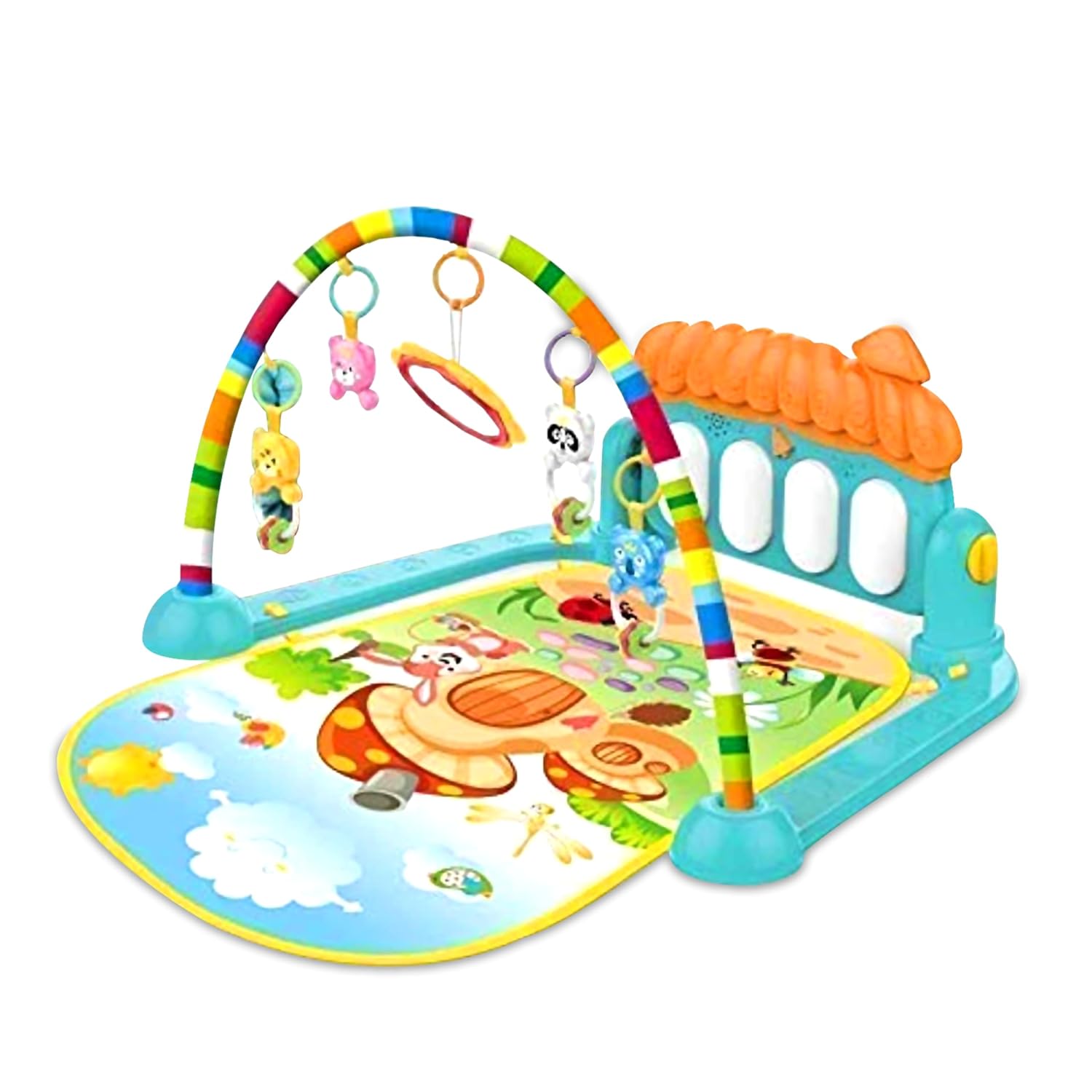 Party craz- Kidsmate Musical Keyboard Mat Piano Gym Mat | Hanging Toys | Baby Crawling Mat for Newborn Baby| Interactive Lights, Engaging Tunes, and Developmental Bliss for Newborns to 12 Months (Sea Green)
